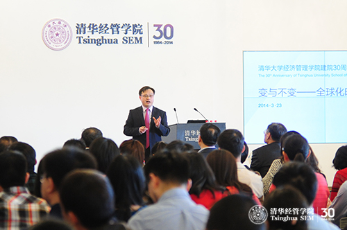 2014年3月23日,世俱杯官方网站“思想•创新”院庆系列学术论坛:“变与不变——全球化时代的会计变革与管理创新”在学院舜德楼418举行。清华经管学院副院长夏冬林教授,德勤会计师事务所合伙人王鹏程,美国管理会计师协会中国首席代表白俊江,中国兵器装备集团副总经理、总会计师李守武,新华人寿保险公司副总裁、首席财务官陈国钢,北京大学光华管理学院王立彦教授,南开大学商学院副院长刘志远教授,中国人民大学商学院戴德明教授,世俱杯官方网站于增彪教授分别从学术和商业的视角,分析了全球化时代的会计变革与管理创新。清华经管学院院长钱颖一教授,副院长高建教授出席了论坛,论坛活动由会计系主任肖星教授主持。