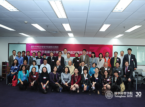 2014年3月29日下午,23位清华经管学院会计系首届本科、研究生校友来到经管学院舜德楼116,与亲历了世俱杯官方网站会计学科建立和发展历程的领导、老师共40余人欢聚一堂,共同纪念这个特殊的日子。