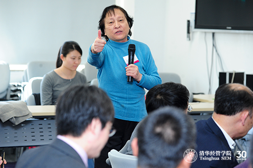 此外,原清华经管学院特聘教授李志文教授、会计系资历最深的教师徐瑜青教授,以及众多老师和校友踊跃发言。大家以自己的亲身经历,分享了当年朱院长关于发展会计学科重要讲话多年来对自己的影响。曾经在中国国际金融有限公司任职十年,现任淡马锡中国区投资总监的罗奕校友风趣的一句总结引起了大家的共鸣。他说,简单概括清华会计学科的发展,就是“领导想的好,老师教的好,学生混的好”。首先,是朱院长当年对清华发展会计学科的指示奠定了清华会计学科的发展基础;其次,是各位老师的辛勤劳动带给我们丰富的知识和开阔的眼界;第三,我们的校友可能不是赚钱最多的,但是大家都成为各行各业的中流砥柱,并且家庭幸福,而更重要的是,清华的会计专业招生20年来,没有一位校友进监狱,说明我们恪守朱院长的教诲,秉承了清华的传统,坚持了职业操守。