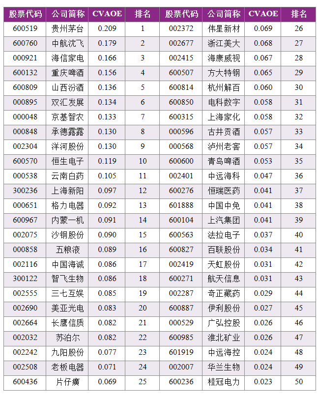 2. 在报告2021年度的样本中,共有76家公司CVAOE为正值。