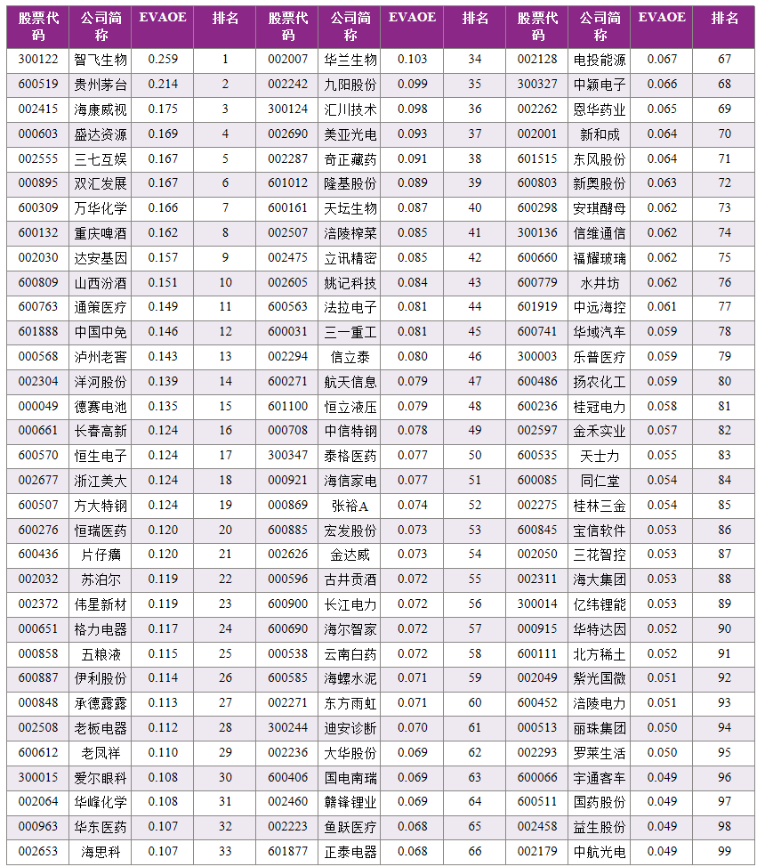 (2016-2021年度EVA Top99榜单详情见《A股上市公司经济增加值创造力99强(2016-2021)》报告)
