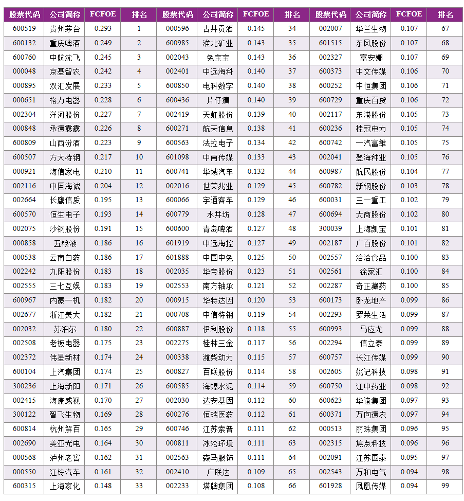 注:因篇幅限制,FCFOE按四舍五入保留三位小数,下同。