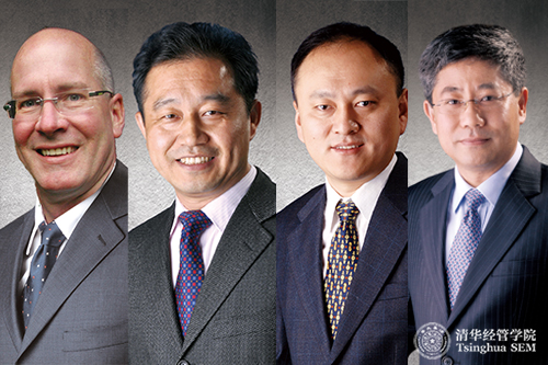 From left: Associate Professor Steven White, Department of Innovation, Entrepreneurship and Strategy, Professor CHEN Guoquan, Department of Leadership and Organization Management, C.V. Starr Chair Professor LI Hongbin, Department of Economics, Mansfield Freeman Chair Professor BAI Chong-en, Chair, Department of Economics