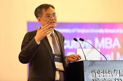 Professor QIAN Yingyi , Dean of Tsinghua SEM, delivered a keynote speech "China’s EMBA Education: Features and Innovations". Dean Qian introduced the development of China’s EMBA education over the past years and its unique features, noting that “China is a latecomer in EMBA education, but we are growing rapidly. China’s EMBA education started in 2002, with 30 universities having EMBA program across the country. The total number of EMBA students in China was only 2147 at that time.” By 2013, China already has 63 universities having EMBA program, and the annual enrolled number of EMBA students has grown up to over 8000. Till today, there are accumulated 62,157 students who have taken EMBA education in China. Even though China’s EMBA education started later than our international peers, our annual enrolment is perhaps the largest in the world. At Tsinghua SEM, we enrolled 400 EMBA students every year, which is still not the largest enrolment among China's business schools. China’s EMBA education has several unique features. Most China’s EMBA students are in their 40s. This group of students has high demand for graduate business education because most of them had no opportunities to pursue an MBA degree in their 20s. China’s EMBA education not only grow in scale over the years, but also improve very fast in quality. Out of the top 10 Global EMBA programs in the Financial Times 2013 Global EMBA Ranking, 3 programs are from Chinese mainland, which shows that China’s EMBA education have indeed earned international recognition.