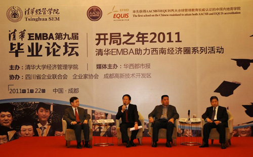 Continuing with the first round of “supporting regional economy” events, the Tsinghua EMBA Program carried out a series of activities in Sichuan Province to support the economic development of the Southwest region. The activities took place during January 20-24, 2011, including graduation forums, a “Mobile Campus,” a Seminar on Chinese Culture, alumni association ceremonies, an EMBA New Year party and visits to local enterprises.