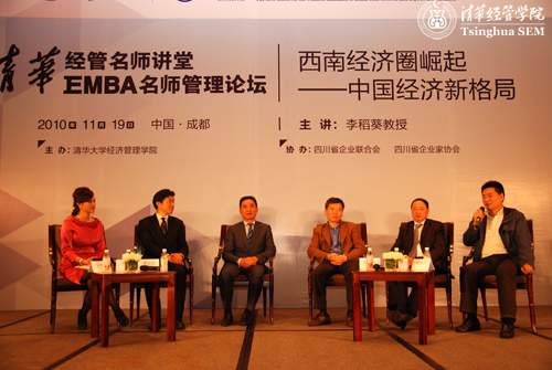 In the keynote speech of the forum, Professor LI Daokui of SEM explored chances and challenges for Chinese entrepreneurs in the next decade. He said, the development of the Southwestern economic region, being a strategic move for China in the post-crisis era, has two implications: the first is to substantially enhance the domestic demand of China, and the second is to pioneer with the economic mode that boosts growth via the increase of domestic demand and the development of urban regions.