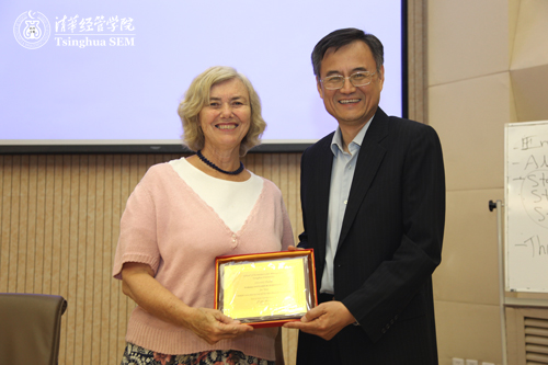 On the last day of the speech, Dean QIAN Yingyi of SEM conferred a tablet to Professor Eisenhardt to thank her support for management research in China. The audience also thanked Professor Eisenhardt for sharing, and SEM for offering the opportunity of knowledge building.
