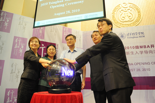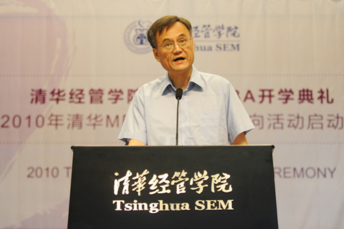 On the ceremony, Professor QIAN Yingyi, Dean of Tsinghua SEM, delivered a speech. He said, 2010 is the twentieth year of China’s MBA education. The School welcomes the 2010 MBA students with a long-prepared new MBA curriculum, which aims to “nurture future leaders with comprehensive management capabilities,” and expands the stress of “knowledge” in the old curriculum to “being” (personal integrity), “knowledge,” and “doing” (practical experience) as a whole.