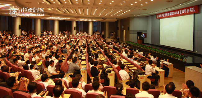 The commencement of Tsinghua SEM for 2009 was held at the Tsinghua auditorium on the night of July 13,attended by Dean of Tsinghua SEM Qian Yingyi, Associate Dean Yang Bin, Chen Guoqing, Liao Li, Bai Chong-en, Xia Donglin, Zhu Yan and Zhao Dongqin. Yang Bin hosted the ceremony.