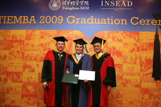 Tsinghua-INSEAD EMBA (TIEBA) Program has graduated its first class on January 19, 2009. Qian Yingyi, Dean of Tsinghua SEM and Charles Galunic, Dean of the INSEAD Executive MBA program presented the diplomas to 40 graduates.