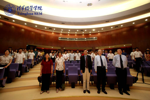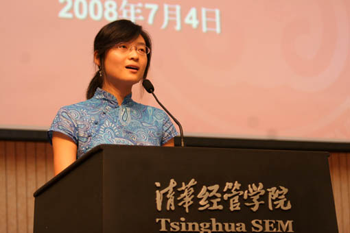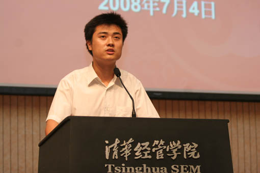 On July 4, Tsinghua SEM hosted a farewell party for all the graduates from the School. Executive Associate Dean Chen Guoqing briefed the participants on details of graduation this year. Associate Dean Yang Bin announced the name list of 2008 Tsinghua SEM excellent graduates.