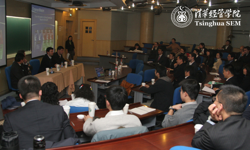 Microsoft's Corporate Vice President Alain Crozier visited Tsinghua SEM and had talks with SEM students onDecember 4, 2007. Professor Chen Zhangwu, Associate Dean of Tsinghua SEM, Professor Li Daokui, Chair of Department of Finance, and Wang Jin, Director of SEM Career Development Center attended the session.
