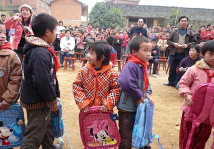 Children at Tianxin Houde Primary School inAnyuan County of Jiangxi Provincenow have more spacious classrooms as a new school building, donated by Shenzhen Alumni of Tsinghua SEM Executive Development Program was completed on December 9, 2007.