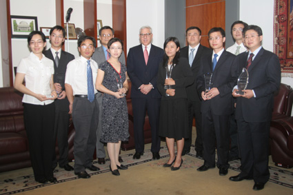 (Mr. Rubenstein with School leaders and student winners in the Tsinghua PE Followship Selection)
