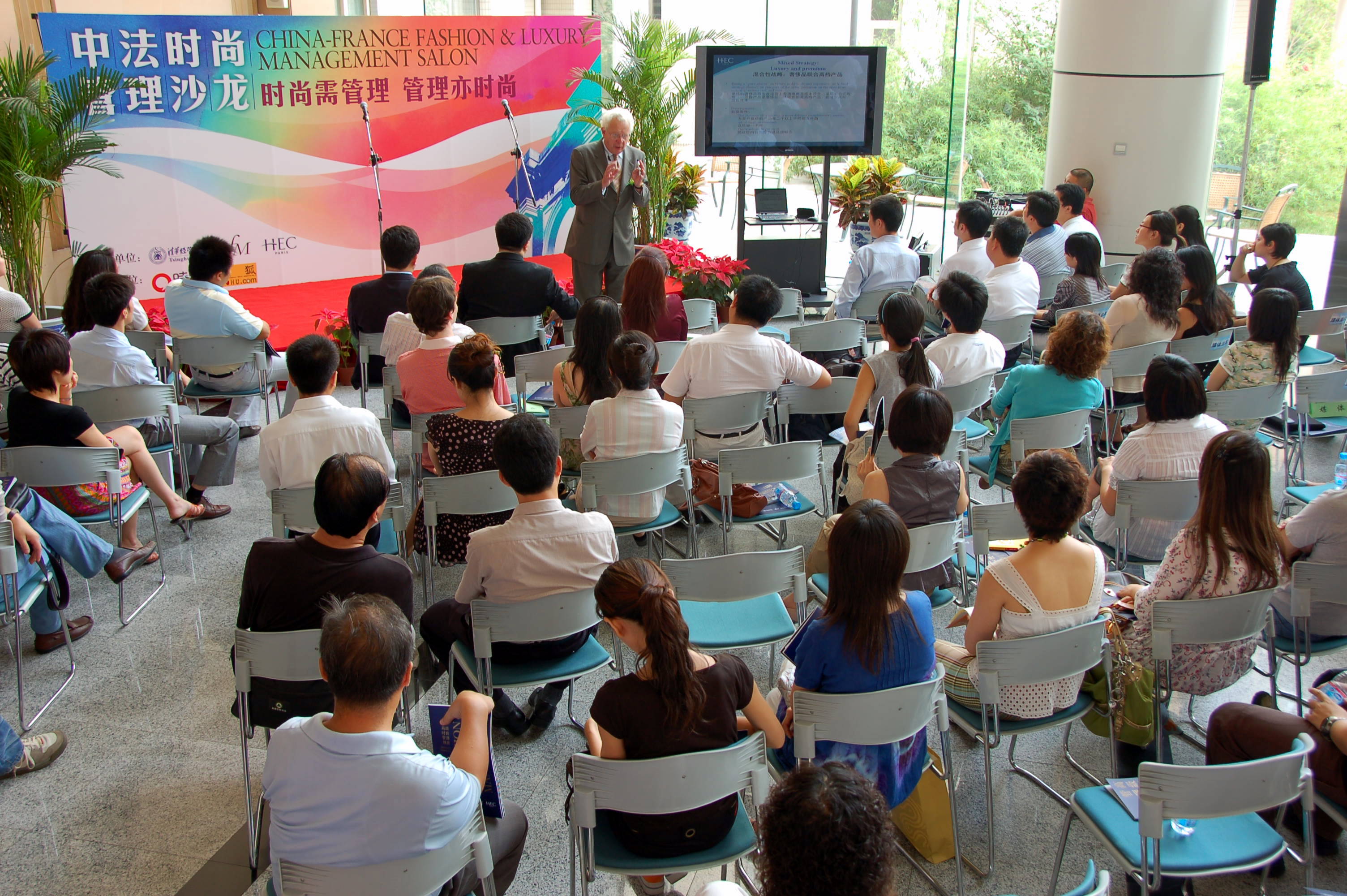 China-France Fashion & Luxury Management Salon was held at Tsinghua SEM onJuly 28, 2007. The event was co-organized by Tsinghua, Institut Fran?ais de la Mode (IFM), HEC-Paris, and sponsored by Fashion Magazine, Sohu.com. Professor Yang Bin, Associate Dean of Tsinghua SEM, Professor Li Fei, Executive Deputy Director ofChinaRetailResearchCenterand Chair of Department of Marketing of Tsinghua SEM, Professor and Jean-Marc de Leersnyder, Associate Dean ofSchoolofManagementof HEC-Paris attended activity and delivered speeches there. Saturday's salon was also attended by more than 100 professionals from fashion and luxury industry community.