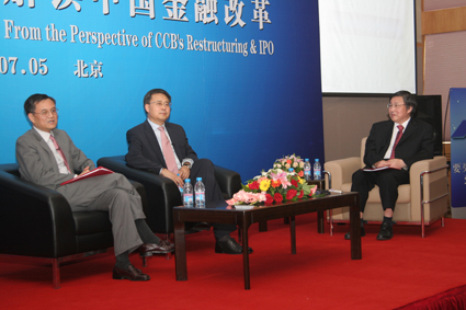 The speech was followed by a dialogue session between Guo Shuqing and Professor Qian Yingyi, Dean of Tsinghua SEM. Dean Qian said Tsinghua SEM shares the same vision with CCB in three aspects: pursuit of “world-class”, global perspective and emphasis on social responsibility. Guo said, “customer service” and “risk control” were two critical elements in determining the capability of a bank, and CCB has made tremendous progress in these two aspects. CCB, as he believes, will get more and more close to the “world-class’ level as long as the bank continues to make sustainable improvement. Guo also talked about his view on the strategy of “local rooted, global reach” from five aspects including customer demand, business structure, market information and human resources development. Speaking of social responsibility, Guo said it doesn’t go against enterprises’ pursuit of maximum profit; and undertaking social responsibility, as he said, means to pay equal attention to all shareholders. He also noted that it is necessary to properly deal with the relationship in-between shareholders, employees, state government, local government, laws and rules, industrial insiders’ community and the public.