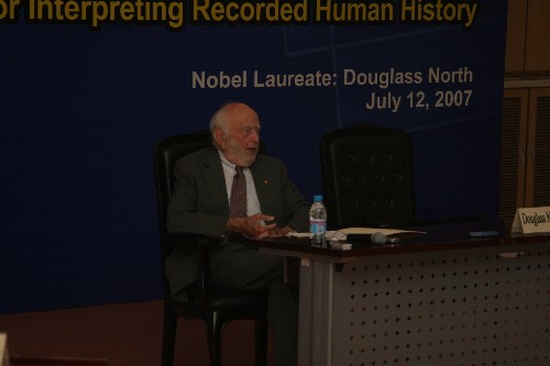 Professor Douglass C. North, 1993 Nobel Laureate in economics has visited Tsinghua SEM on July 12, 2007, where he delivered a speech entitled “A Conceptual Framework for Interpreting Recorded Human History” and held a dialogue with renowned Chinese economists later in the afternoon.