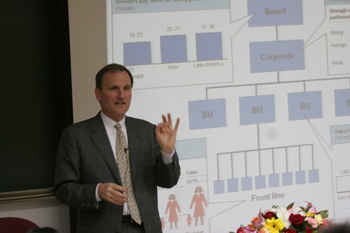 Mr. Saar offered some implications of high performance organization for Chinese students: first, set aspiration to build a high performance organization; second, determine which to “import” vs. “build”;third, ccommit to personally become a “globally capable’ leader.