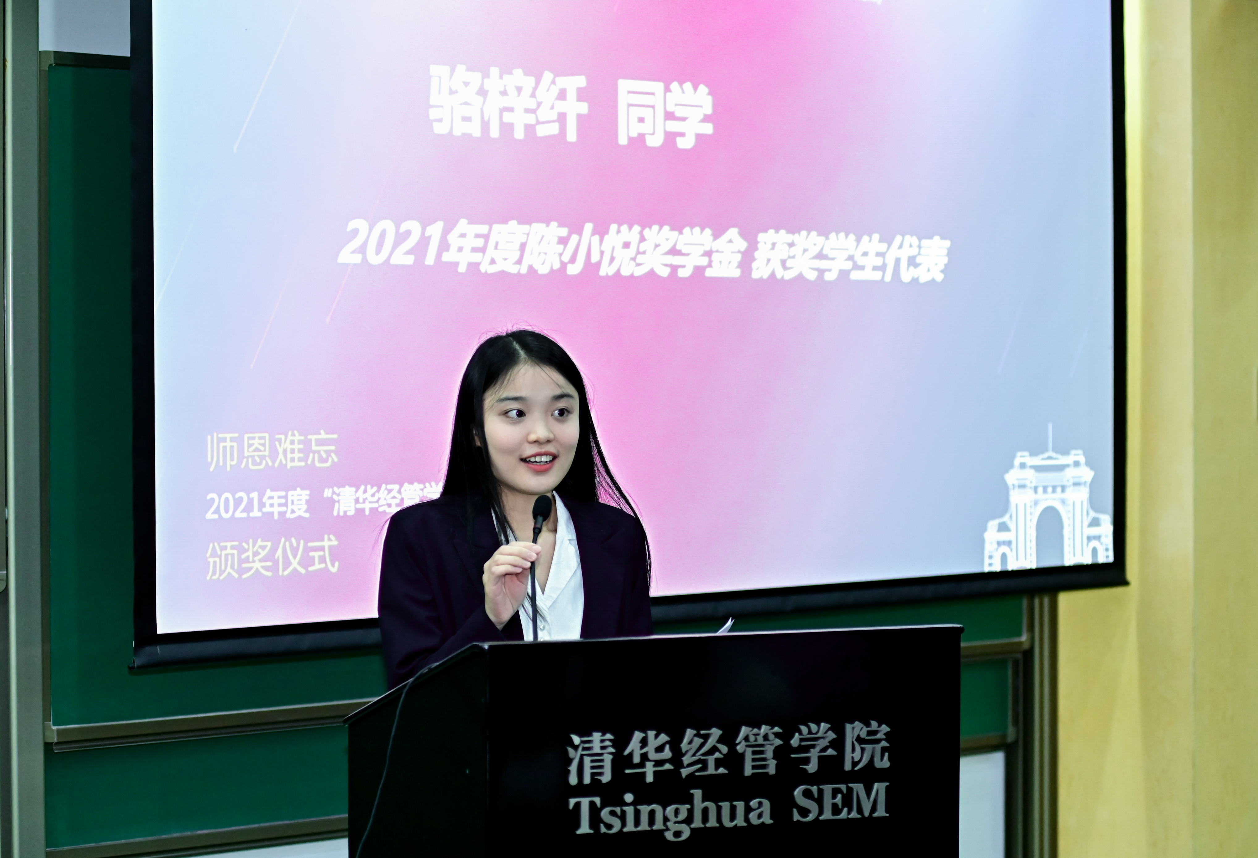 At the end, LUO Zixian thanked Professor CHEN Xiaoyue and the fund committee for their encouragement on behalf of the recipients. She said the scholarship is not only a recognition but also a motivation for self-improvement and innovation. "CHEN, who 'looked at the world from China, and sought truth and excellence,' taught us through his experiences as a scholar and a person," she said. LUO said she hoped students will carry on his spirit of pursuing truth and excellence on their own paths in life.