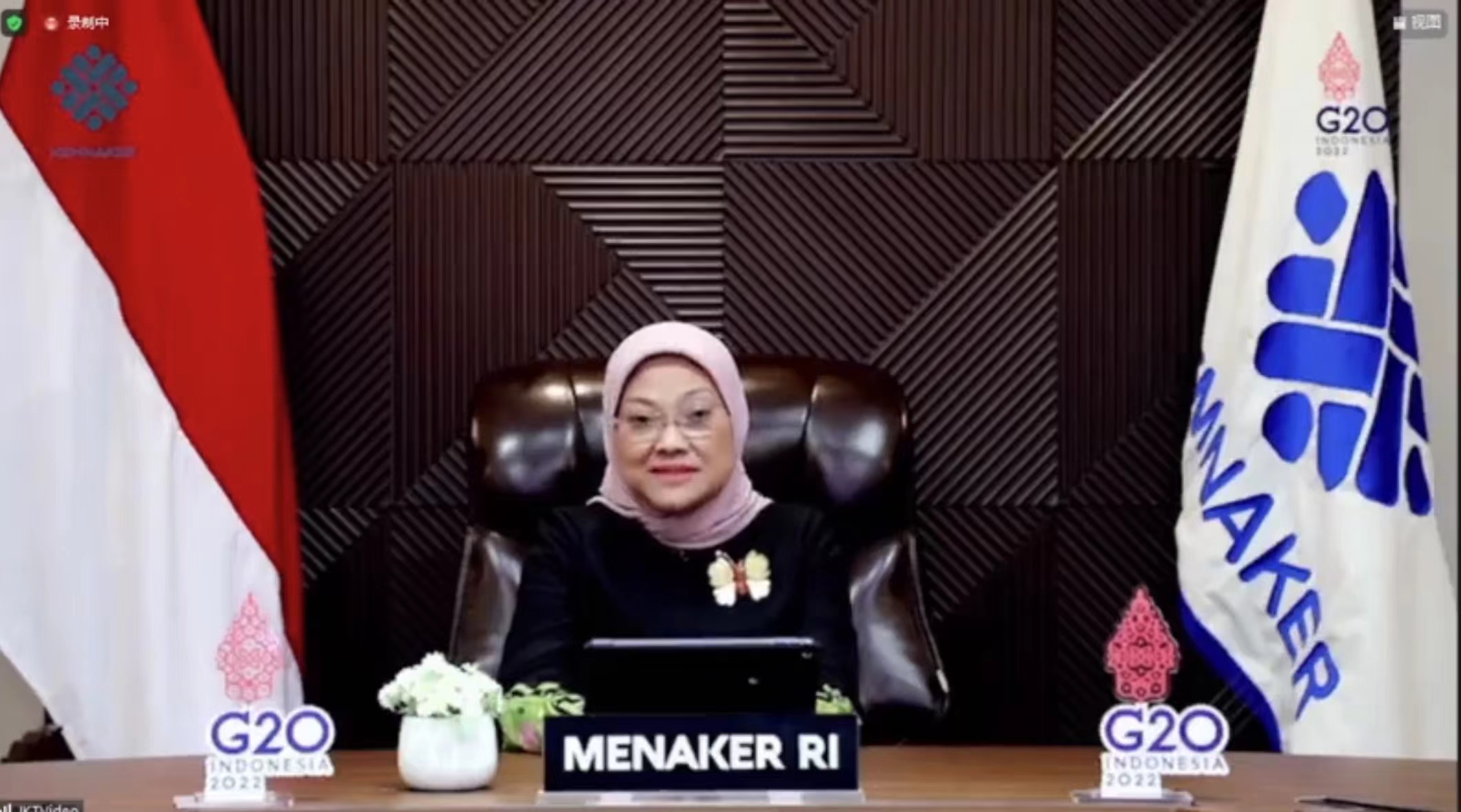 Dr. Ida Fauziyah, minister of Manpower of the Republic of Indonesia, and YU Jiadong, vice minister of Human Resources and Social Security of the PRC, spoke at the meeting.