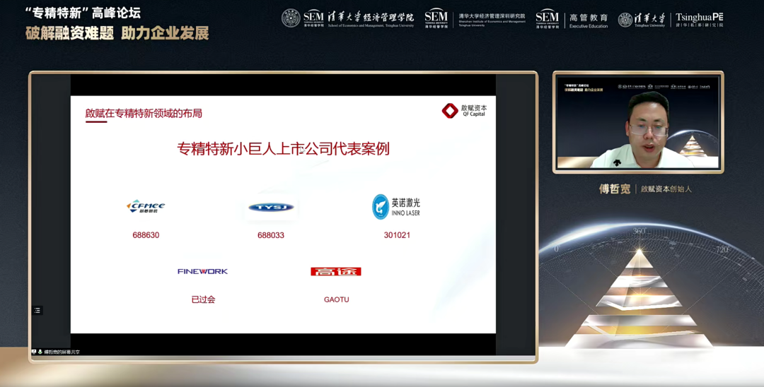 FU Zhekuan, president of QF Capital, said in his keynote speech that technological independence and an upgrade of manufacturing capability are the main themes of China's economic development, as well as a focus on investment in specialized and sophisticated enterprises. For investors, such enterprises that produce new and unique products have the following characteristics: the cultivation cycle is long, so they require investors to be patient and need value-added services after investment; after being recognized by the market, they develop rapidly and have diversified exit channels; and after becoming a specialized and sophisticated enterprise, the policy support will be strong.
