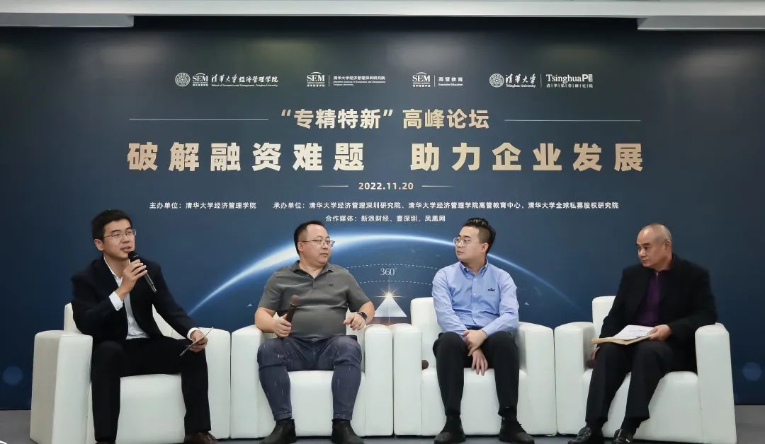 The Shenzhen Institute of Economics and Management, Tsinghua University (Tsinghua SIEM) organized a forum online and in-person to solve the financing difficulties of specialized and sophisticated enterprises that produce new and unique products on November 20, 2022. The event was co-organized with the Executive Education Center of Tsinghua University School of Economics and Management (Tsinghua SEM) and the Institute for Global Private Equity, Tsinghua University. Experts and scholars from enterprises, universities, research institutes and regulatory departments met to discuss solutions for the enterprises. Professor LI Jizhen, associate dean of Tsinghua SEM, presided over the forum.