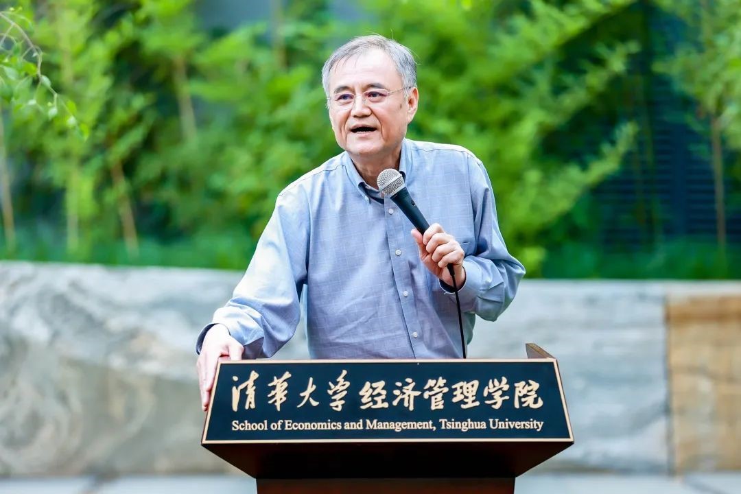 As part of the program, a reception for the meeting took place at the sunken plaza in front of the Lihua Building on the evening of June 30. QIAN Yingyi, a professor in the Department of Economics and a Distinguished Professor of Arts, Humanities and Social Sciences at Tsinghua University, as well as the former fourth dean (2006-2018) of Tsinghua SEM, attended as a speaker. In his speech, he gave an overview of the meeting, provided details about the newly constructed building at the school, and discussed its intended purpose and functionality.