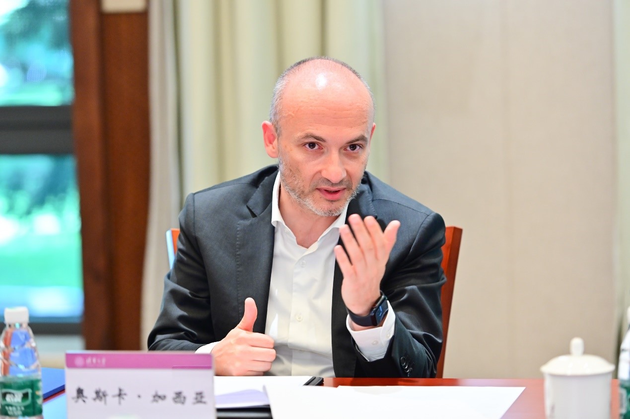 On behalf of Tsinghua University, YANG Bin warmly welcomed the visit of Maceiras and his delegation, and expressed thanks to INDITEX for their support of Tsinghua University. He said the cooperation between Tsinghua and INDITEX is based on trust and friendship. From its support for the overseas exchange of teachers and students at Tsinghua SEM to the "the Belt and Road Scholarship", Sustainable Development Fund project, and cooperation with the Academy of Fine Arts, all have yielded fruitful results, he said. The donation is the third from INDITEX to support Tsinghua SEM. YANG said he hoped both parties could further deepen their cooperation, utilize their advantages in business to collaborate in talent cultivation, public health, carbon neutrality, and other areas, and to continue their precious friendship.