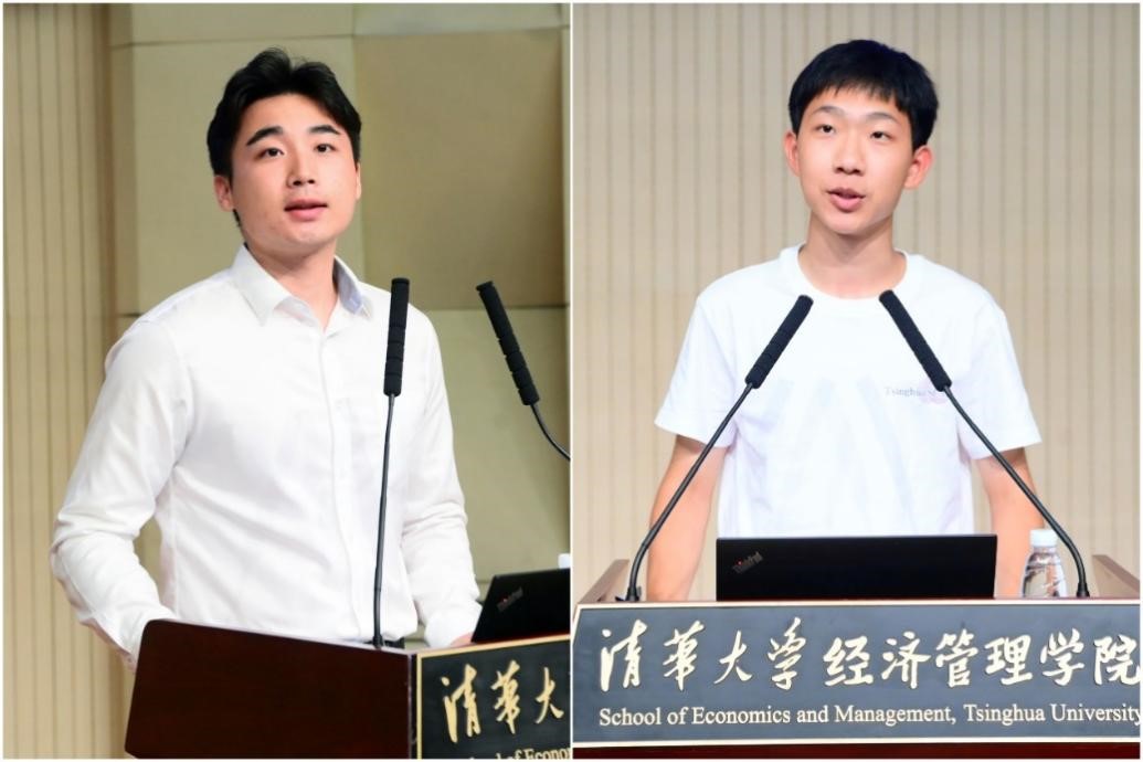 SEM Student Union president HE Yuqiao (left) and LONG Zizheng (right), a Class of 2027 undergraduate, speak at the opening ceremony.