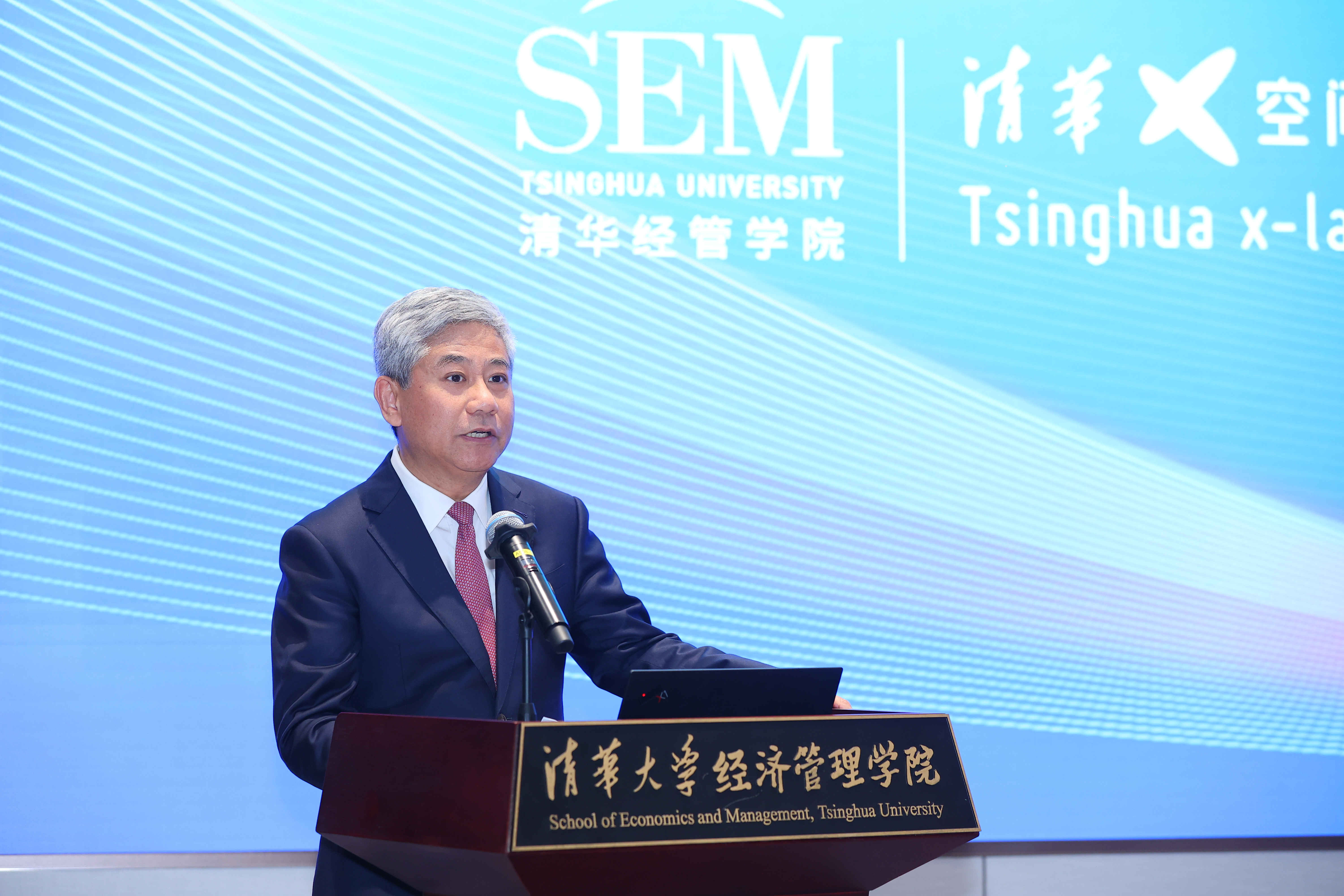 YANG Bin, vice president of Tsinghua University; BAI Chong-En, dean of the School of Economics and Management at Tsinghua University (Tsinghua SEM); QIAN Yingyi, distinguished professor of Arts, Humanities, and Social Sciences at Tsinghua University, professor in the Department of Economics, and the fourth Dean of Tsinghua SEM (2006-2018); HE Ping, deputy dean of Tsinghua SEM; ZHU Xufeng, dean of the School of Public Policy and Management at Tsinghua University; WANG Tiefeng, chair of the Department of Chemical Engineering at Tsinghua University; LIU Qiang, chair of the Department of Precision Instruments at Tsinghua University; LI Jingshan, head of the Department of Industrial Engineering at Tsinghua University; ZHEN Shuning, dean of the Institute of Tsinghua University in Hebei; and leaders and representatives from as many as 20 schools, departments, and divisions attended the ceremony. Additionally, LI Yong, deputy director of the Investment Promotion Bureau of the Ministry of Commerce; the couple SHI Jinshan and LI Ran, top executives of Beijing Jiaxin Huijin Asset Management; David Fang, vice president of Corporate Affairs & Sustainability at Nestlé Zone Greater China; ZHANG Jinsheng, executive president of Tus-Holdings; and LU Min, vice president of Beijing Century Galaxy Technology Group, and guests from more than 20 partner institutions and dozens of entrepreneurial mentors, were present at the event.