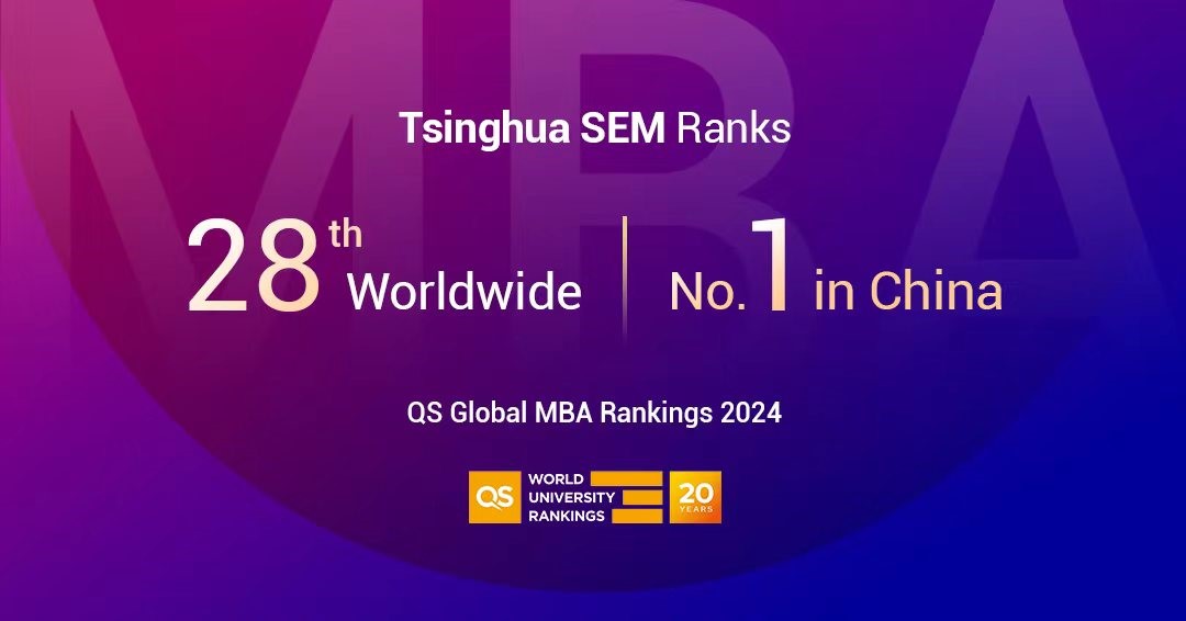 The School of Economics and Management, Tsinghua University (Tsinghua SEM) ranked 28th worldwide in the latest QS Global MBA Ranking 2024 released on October 25, 2023. This ranking raises Tsinghua SEM's position by one spot over last year, making the program China's top MBA program for the second consecutive year.