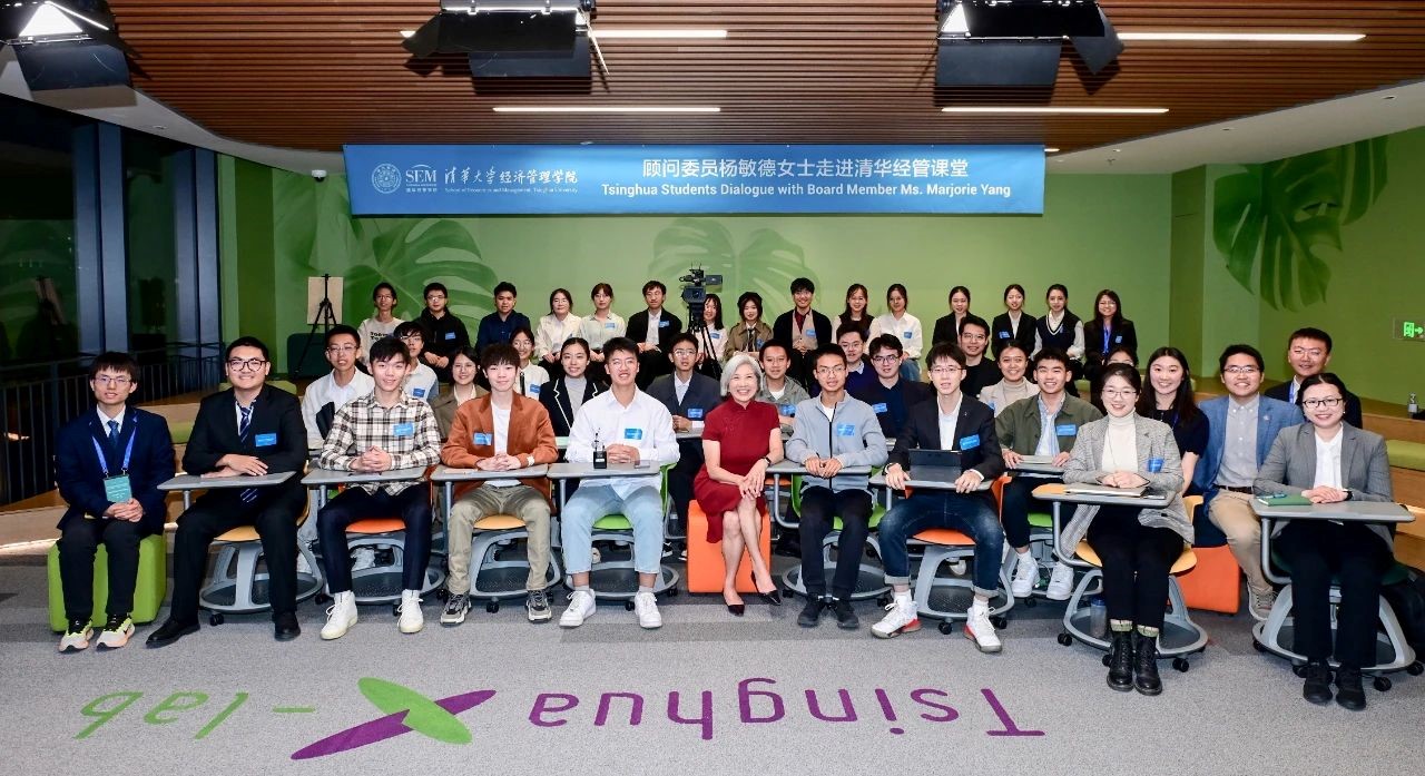 The "Tsinghua Students Dialogue with Board Members" was in full swing as part of the series activities of 2023 Advisory Board Meeting of Tsinghua SEM on October 19, 2023. Marjorie Yang, chairman of Esquel Group, Advisory Board member, lectured at Tsinghua classroom and met with around 30 undergraduate and Ph.D students. HE Ping, Tsinghua SEM vice dean, and ZHANG Chen, Tsinghua SEM assistant dean, attended the event. FAN Jiarui, an undergraduate with a double major in computer science and finance (Class of 2024), hosted the talk.
