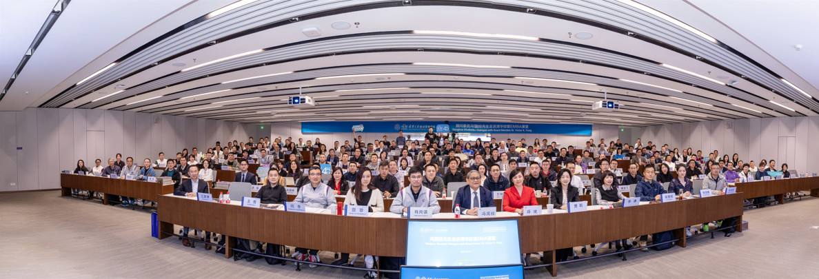 Victor K. Fung, Group Chairman of the Fung Group and member of Tsinghua University School of Economics and Management (Tsinghua SEM) Advisory Board, lectured about "The Future of Multilateralism and International Trade" on the morning of October 19, 2023. Fung shared his view of the current trade environment and explained how Chinese companies can better reach world markets with Tsinghua SEM EMBA students. XUE Jian, deputy dean of Tsinghua SEM, moderated the lecture.