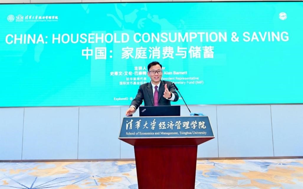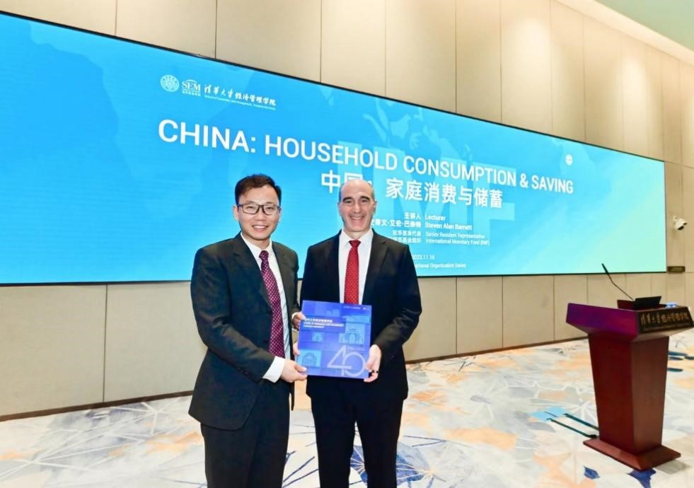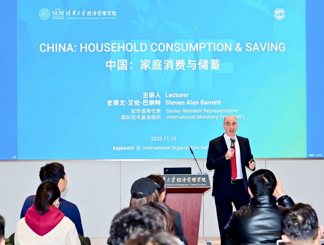 The International Monetary Fund's (IMF) senior resident representative in China, Steven Alan Barnett, visited Tsinghua School of Economics and Management (Tsinghua SEM) on November 16, 2023, and delivered a keynote speech titled "China: Household Consumption & Saving."