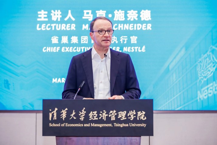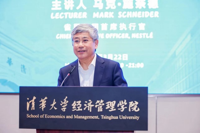 Mark Schneider, CEO of Nestlé Group and member of the Advisory Board of Tsinghua University School of Economics and Management (Tsinghua SEM), visited the school to delivery his keynote speech titled "Strategic Business Layout and Decision Making for Multinational Corporations from Global Perspectives" on March 22, 2024. BAI Chong-En, dean of Tsinghua SEM, Mansfield Freeman Chair Professor, and executive dean of the Institute for Global Development at Tsinghua University, attended the event along with many others. The event was presided over by HE Ping, vice dean of the school.