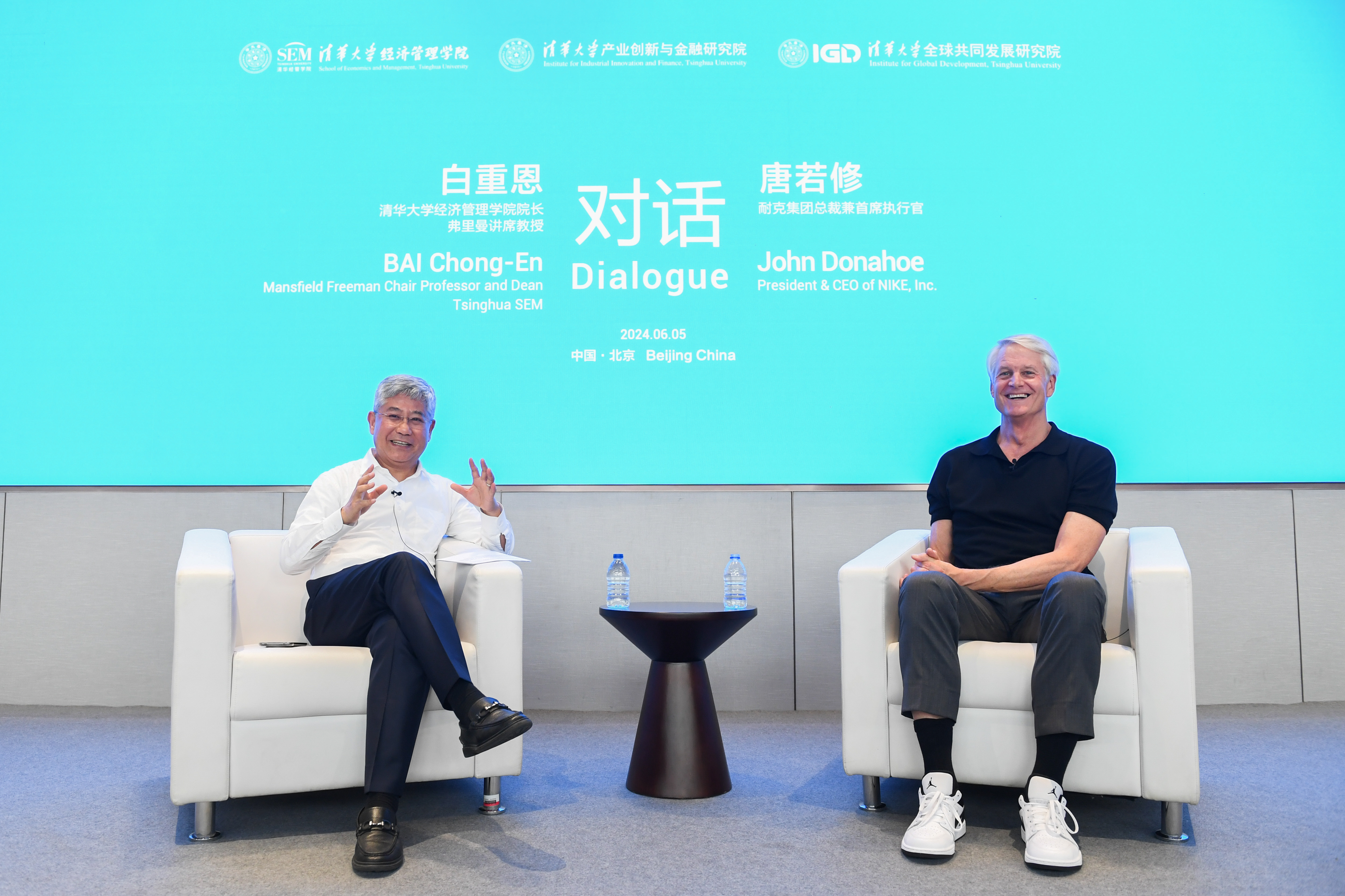 At Tsinghua SEM, John Donahoe engaged in a lively dialogue with Dean BAI Chong-En and interacted with more than 300 students. They discussed leadership, the role of sports in today's world, the growing importance of innovation, and how collaboration can drive sustainable development.