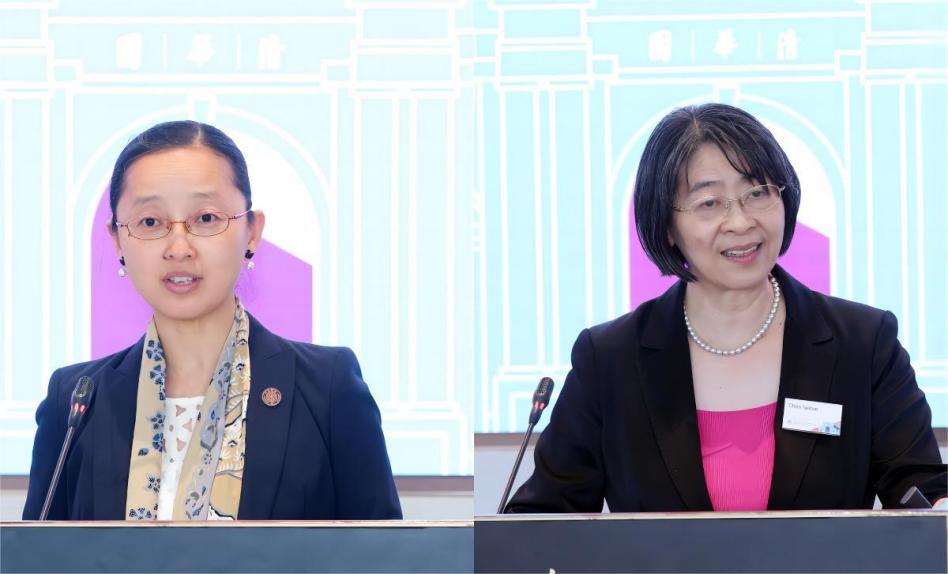 LIAO Ying (L) and CHEN Taotao (R) speak at the event.