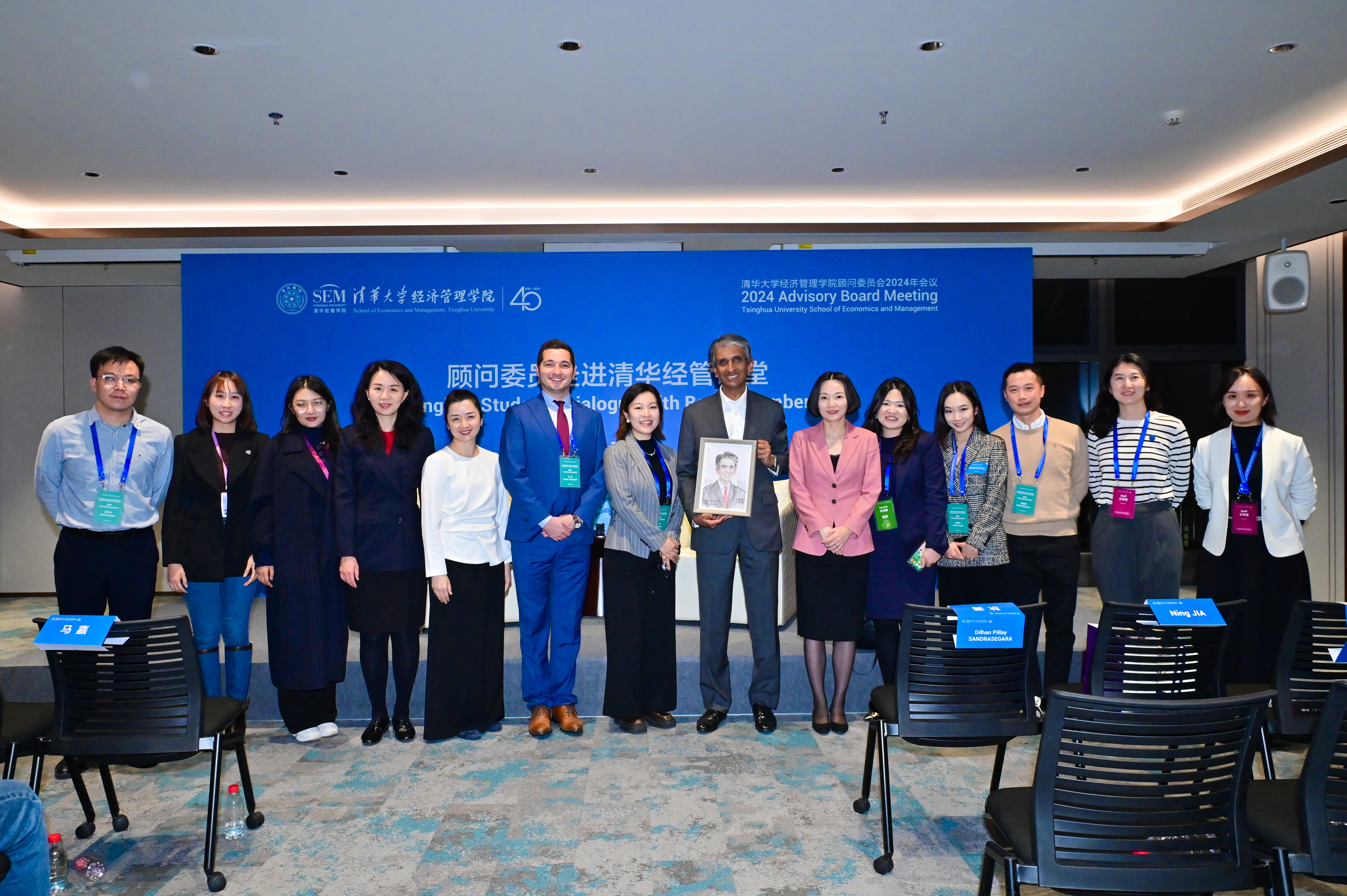 Tsinghua University's School of Economics and Management (Tsinghua SEM) hosted Dilhan Pillay SANDRASEGARA, a member of its Advisory Board and the executive director and CEO of Temasek Holdings (Private) Limited and Temasek International Pte. Ltd. on October 24, 2024. SANDRASEGARA was invited to participate in a class where he shared Temasek's long-term investment strategies from a global perspective. He engaged in a dialogue with Jia Ning, associate professor of accounting and academic director of Tsinghua Global MBA Program, and exchanged ideas with more than 100 students from the school. The event was also attended by LIM Ming Pey, chief of staff, deputy chief corporate officer, and joint head of Corporate Strategy at Temasek, and Ma Jia, director of Tsinghua MBA Programs. It was hosted by students from the Tsinghua Global MBA Program.