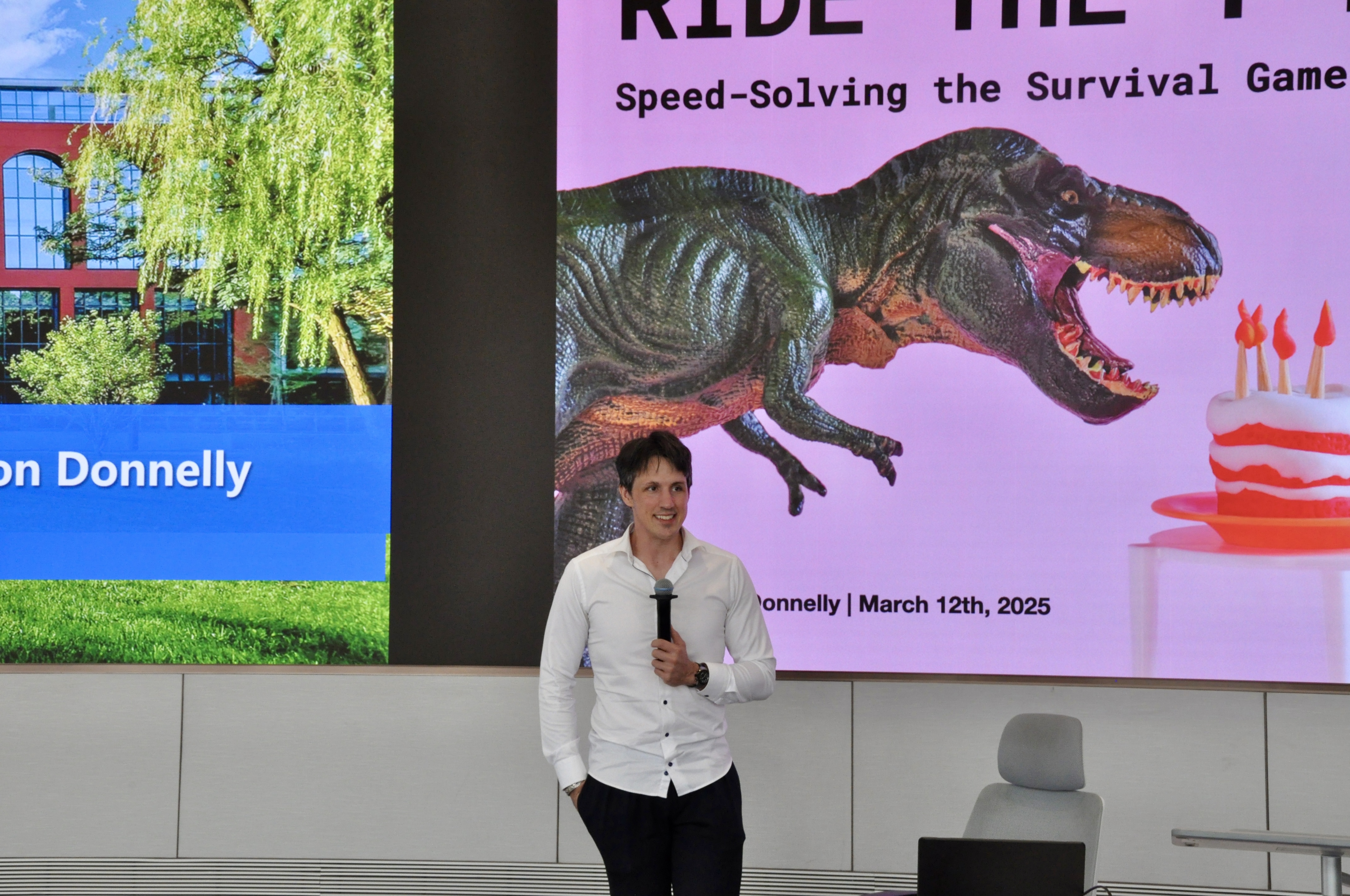 Donnelly delivered a keynote speech titled "Innovation and Practice in AI Frontier Fields," providing an in-depth analysis of current AI technology development trends. Drawing on his extensive global experience in the AI industry, he shared insights into AI's application frameworks across domains such as intelligent decision-making, enterprise management, and fintech. He observed that AI is rapidly transitioning from laboratories to real-world economies, with widespread adoption across various sectors including healthcare, finance, manufacturing, and culture. Donnelly stressed that business leaders must accurately assess both AI's technological advantages and its potential risks while developing scientifically grounded implementation strategies to maximize its benefits. Addressing AI-driven workforce transformation, he emphasized that future core competitiveness will hinge on cross-domain collaboration and tool mastery. "We live in a world full of answers," he said. "The real challenge lies in asking better questions." Using the dinosaur statue at Googleplex as a metaphor, he urged the audience, "Rather than fearing the dinosaur, we must learn to ride it," advocating for continuous learning and capability evolution to sustain leadership through technological waves.