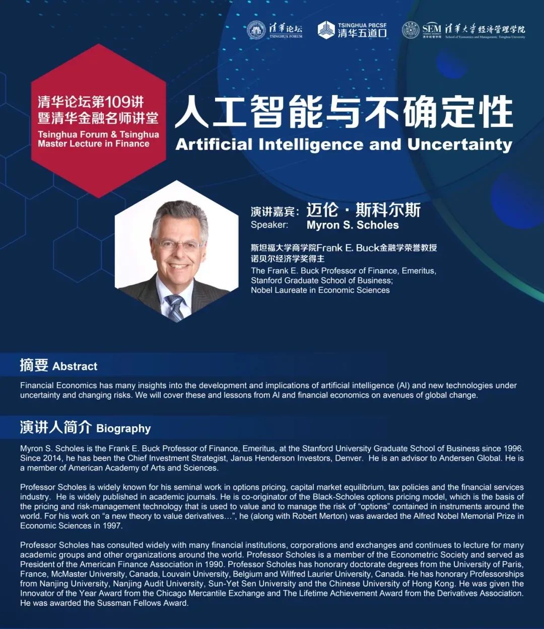 【Speaker】Myron S. Scholes, the Frank E. Buck Professor of Finance, Emeritus, at the Stanford University Graduate School of Business; Nobel Laureate in Economic Sciences