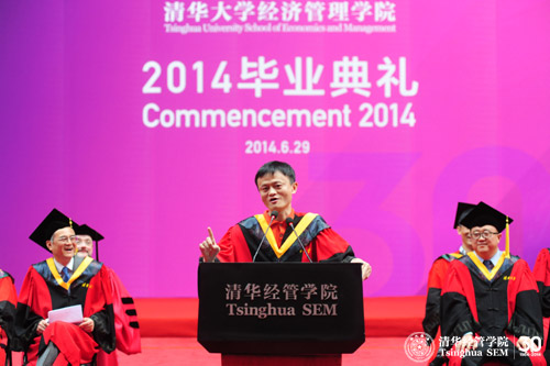 On June 29, 2014, Tsinghua SEM held the 2014 Commencement in the Gymnasium of Tsinghua University. More than 2,000 graduates, their families and friends, and the faculty and staff of the School participated in the Commencement. Mr. Jack Ma, Chairman of Alibaba Group and a member of the School’s Advisory Board, delivered the Commencement Address.