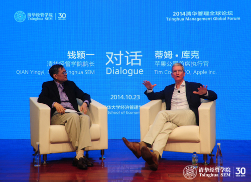 Dialogue between Dean QIAN Yingyi and Tim Cook at the 2014 Tsinghua Management Global Forum on October 23, 2014