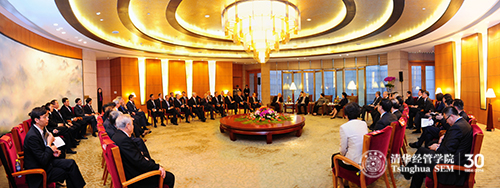 ZHU Rongji and LIU Yandong met with Tsinghua SEM Advisory Board members