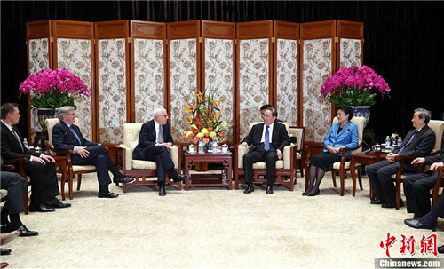 YU Zhengsheng, Chairman of the National Committee of the Chinese People's Political Consultative Conference, met with members of the Advisory Board of Tsinghua University School of Economics and Management in Beijing on October 23, asking them to offer more advice on China's economic growth.