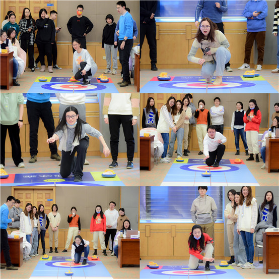 座谈会结束后,师生开展了旱地冰壶体验活动,体验冰雪运动的魅力,会场留下阵阵欢笑。