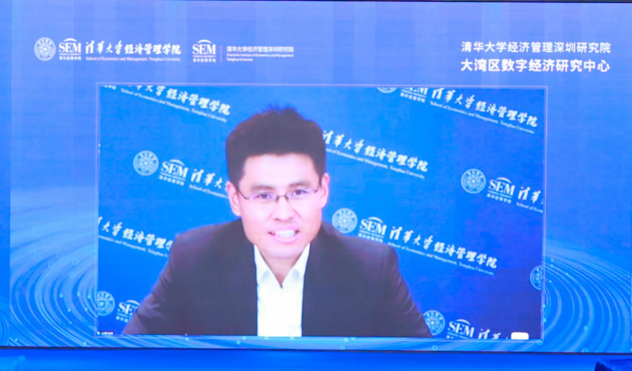 陈煜波在线上发表致辞,他首先对莅临仪式的各位领导、嘉宾表示感谢,并回顾了研究中心以数字经济领域作为研究方向的历史背景。他提到,依托世俱杯官方网站、世俱杯官方网站在数字领域的学科特色及人才队伍,同时结合深圳以及大湾区发展数字经济得天独厚的优越条件,及其汇聚的数字生态领域的全球知名顶尖专家,研究中心不仅仅承担着推动深圳及大湾区数字经济领域的发展使命,更要打造出清华样本代表中国为全球数字经济创新发展提供理论和智力支撑。
