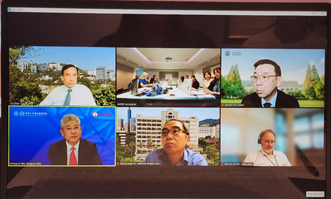 2022年11月21日,清华经管学院院长白重恩应邀线上参加2022年亚太管理学院联合会(Association of Asia-Pacific Business Schools, AAPBS)年会理事会议。此次会议选举白重恩院长为亚太管理学院联合会新任主席。