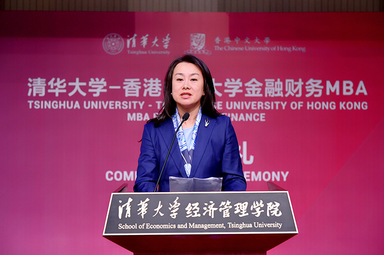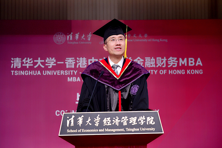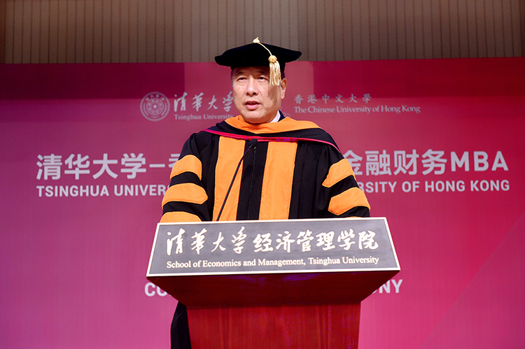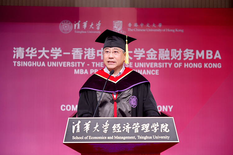 清华经管学院院长白重恩教授在致辞中对毕业生表示祝贺。他讲到,三届毕业同学受疫情影响具有独特的学习经历,这段守望互助的学习经历将是项目带给各位同学的宝贵财富。技术进步、经济转型与当前的国际形势为金融从业者带来不确定性,期待各位毕业生积极应对挑战,继续在工作岗位上为社会进步、国家发展与人类事业做出贡献。同时,各位毕业生即将成为清华经管学院与香港中文大学商学院校友大家庭的一员,期待能够为学院发展做出更多贡献。