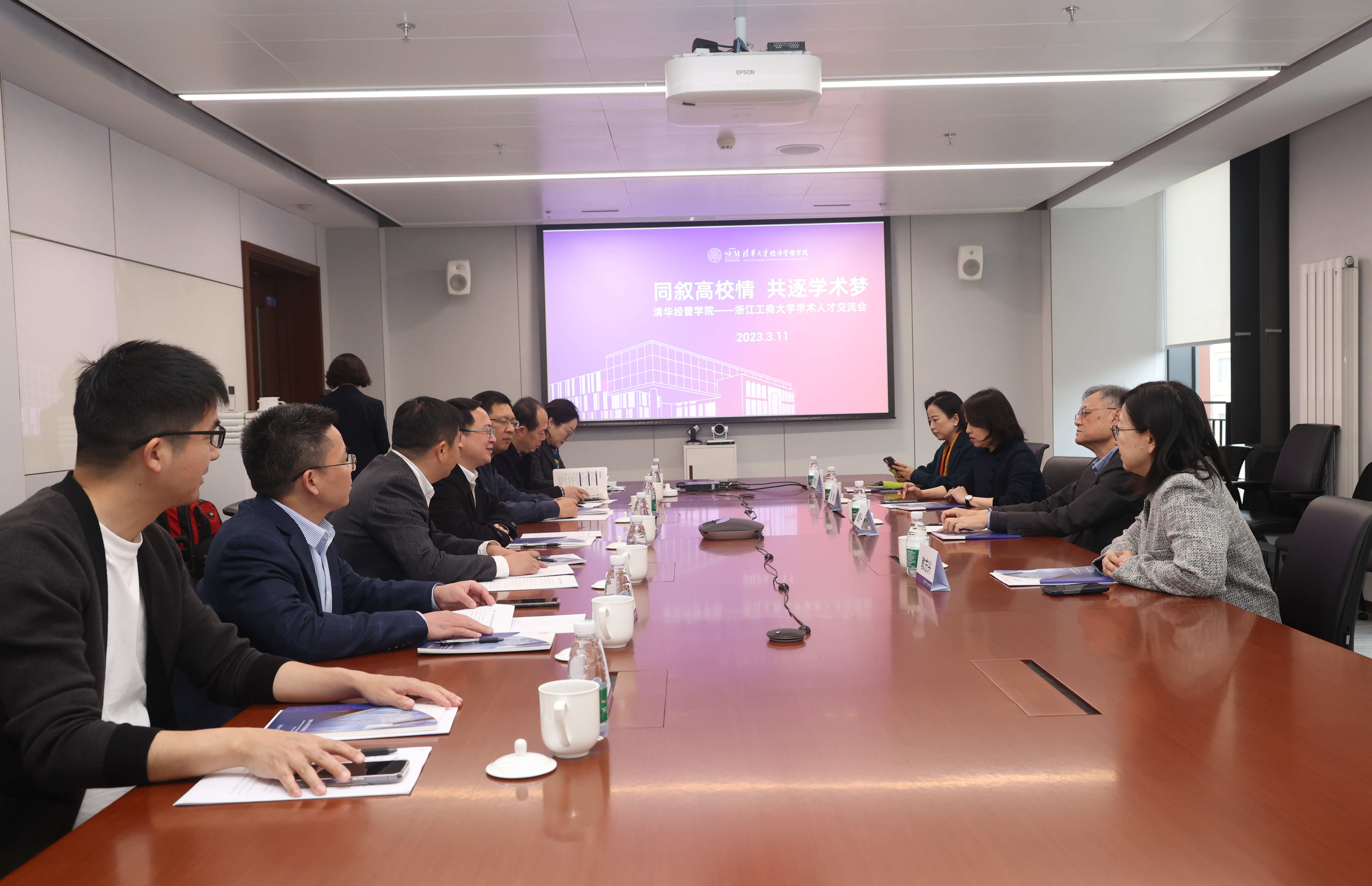 2023年3月11日,清华经管学院—浙江工商大学交流座谈暨学术人才宣讲会在学院举行。浙江工商大学副校长陈衍泰、人事处处长郑晓东带队,工商管理学院(MBA学院)院长俞荣建、经济学院院长赵连阁、金融学院院长柯孔林、会计学院副院长谢诗蕾、工商管理学院(MBA学院)院办主任毕德亮一行到访学院,世俱杯官方网站文科资深教授、经济管理学院教授钱颖一,清华经管学院院长助理迟巍,校友会联席秘书长教方兴,职业发展中心主任顾英杰一同参加交流座谈。