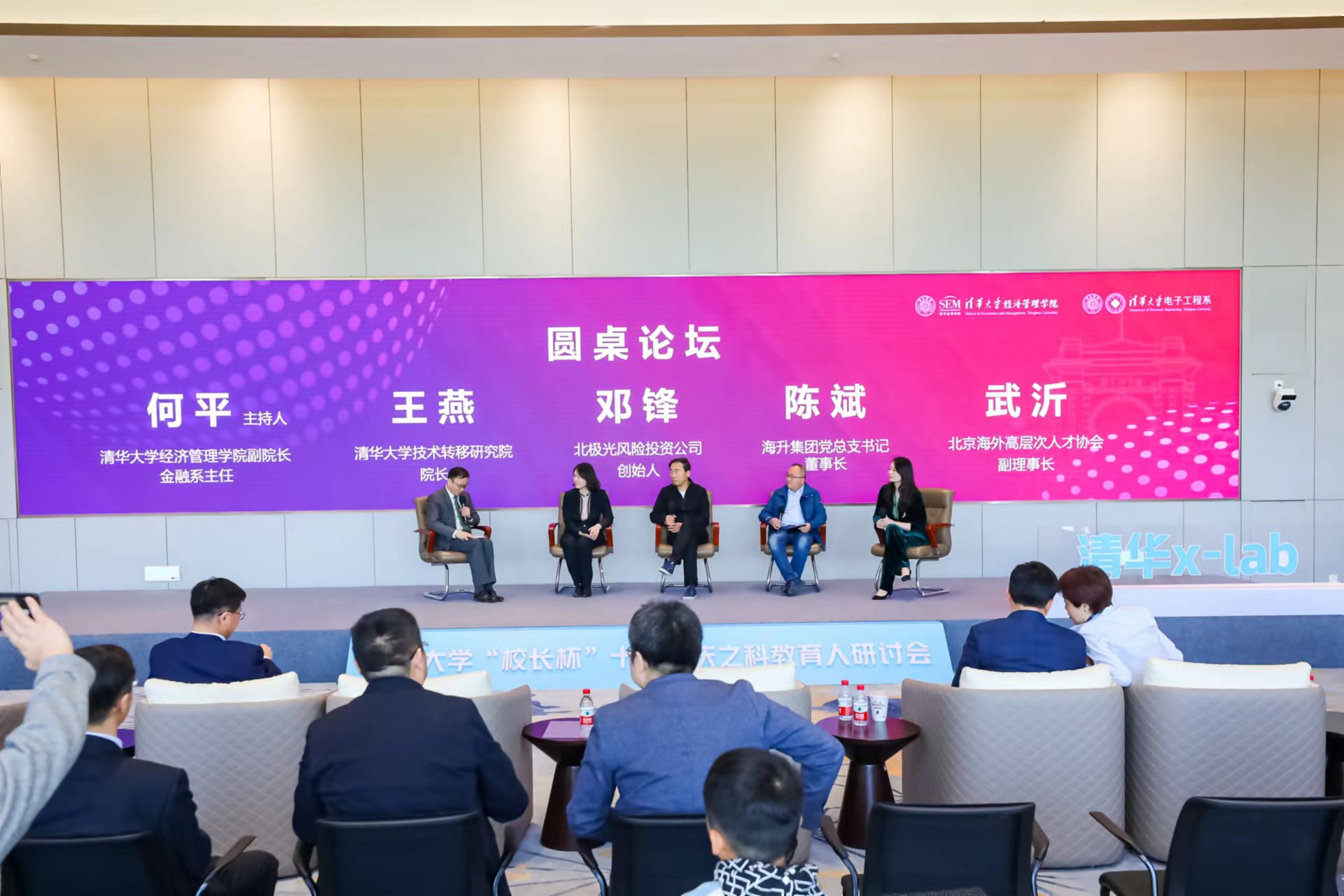 清华经管学院院长白重恩表示,培养具有全球胜任力、多元化、学科交叉的创新人才是高校提高人才教育质量的重要抓手。此次活动结合经管学院和电子系在商业化和硬科技领域的积累,通过研讨会的形式进行有效交流与合作,有利于充分发挥高校多学科交叉育人的优势,携手打造创新、创业生态圈,推动院系协同创新,提升学生创新意识和实践能力。